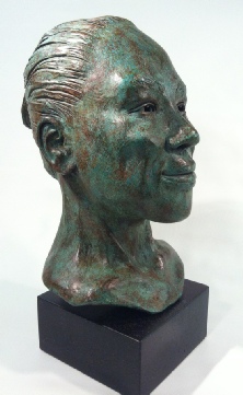 “Self Assured” is available as a limited edition of 30. Each edition is cast by the artist in Bronze resin . It is finished with a verdigris and red-