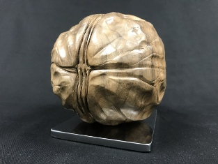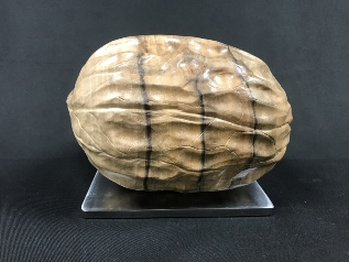 This sculpture has been carved from a well seasoned piece of walnut. The photos show the beautiful grain and rich colours of this hardwood.